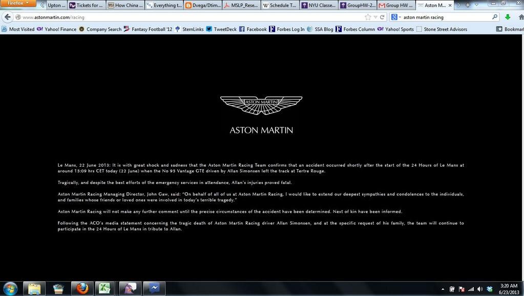 So, once official confirmation had come through that we had moved into a crisis communications situation the agreed plan for www.astonmartin.com was enacted. In essence it relates to what many companies do, replacing the main homepage and content pages with a ‘dark site’ with the removal or any marketing or promotional messages – simply the relevant statement on the incident. This certainly tallies with the proposed ‘dark site’ approach I’d planned during my time at TUI Travel for http://www.thomson.co.uk and http://www.firstchoice.co.uk. Fortunately to manage http://www.astonmartin.com we use an extremely nimble and flexible CMS (www.sitefinity.com) which made things easy and quick – time is of the essence in situations like these. Within around ten minutes both our main homepage and racing homepages had been changed to a black background with the official press statement displayed in white. Both homepages remained like this through Saturday and Sunday, returning to normal service (although with a tribute as lead story) on the Monday.